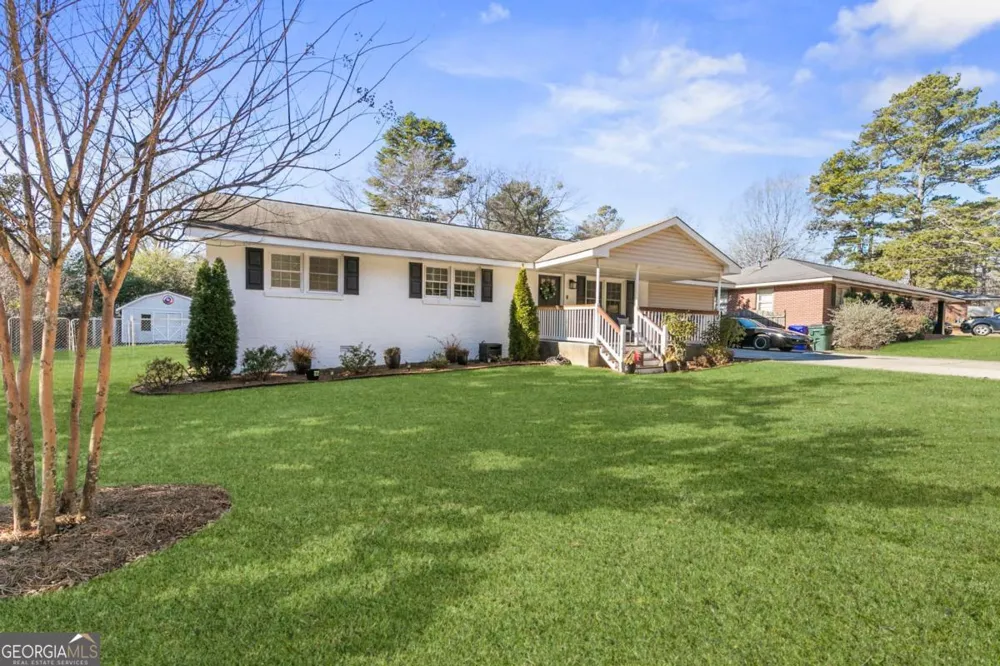 Charming Stepless Ranch in Conyers Co No HOA, New Kitchen, Fenced Yard, New Flooring, Mancave! This 3-bedroom, 2-bathroom stepless entry ranch boasts an inviting blend of modern updates and timeless charm. Nestled on a level lot with a covered front porch, a spacious driveway perfect for multiple cars, and a fenced backyard, this home offers both convenience and privacy. Step inside to discover gorgeous flooring, featuring hardwoods in the bedrooms, and durable luxury vinyl plank in the living areas. The kitchen is a showstopper with IKEA Bodbyn cabinets, Ekbacken countertops, a double basin farmhouse sink, subway tile walls, and grey woodgrain ceramic tile floors. Stainless steel appliances, including a gas range, oven, microwave, and dishwasher, make cooking a delight. Adjacent to the kitchen, the dining area is highlighted by custom-built solid wood bench seating with built-in storageCoa cozy spot for meals and gatherings. The living room exudes warmth with its hardwood accented LVP flooring and an IKEA Besta espresso wall unit, creating the perfect entertainment hub. Recessed lighting throughout the kitchen, dining room, and hallway adds a modern touch. A unique feature of this home is the enclosed carport, now a tavern-style man cave with a built-in bar and sound-insulated walls. Whether you envision a lively karaoke room, a home office, or a traditional garage, this versatile space offers endless possibilities and can be easily converted to an enclosed garage. Both bathrooms are beautifully updated. The main bathroom features a farmhouse-style double vanity with a quartz top, a wood shiplap accent wall, and geometric white tile flooring and new black modern mirrors. The secondary bathroom includes a stall shower and a toilet & vanity conveniently located near the man cave.Outside, the fenced, level backyard is a private oasis with a 14-foot cedar pergola deck, large storage shed with a workbench and attic space, a garden area, and a firepit perfect for relaxing evenings. The roof is 7 years old, the HVAC system is 6 years old, and the water heater is 3 years oldCooffering peace of mind for years to come. No deferred maintenance here! This homeCOs location is equally impressive. Just seconds to the nearby elementary and high school, explore the new dog park and childrenCOs playground, or enjoy the Old Town Conyers entertainment district, Lewis Vaughn Botanical Garden, and Bonner ParkCoall just minutes away. Best of all, with no HOA or rental restrictions, this home is ideal for anyone with an RV, boat or business vehicle. You can even add on or build a detached garage, the options are endless. DonCOt miss your chance to make this thoughtfully updated and perfectly located property your next home. This home was staged by The Lindsey Haas Real Estate & Staging Team complimentary. We bring in furniture, decor and art that stays through photos, showings and appraisal to show this home best! We stage vacant and occupied homes for free when you sell with our team.